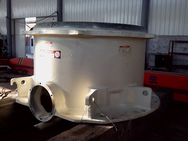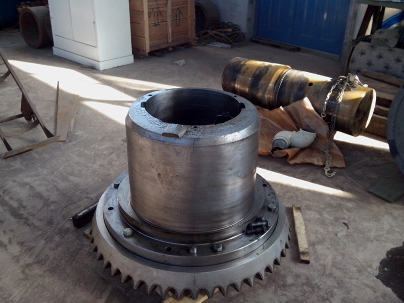2014-06-08 客戶HP500 破碎機運行中發生主軸斷裂,運到我公司進行維修。我司技術人員拆除主軸后發現主軸錐孔超差,然后對主機架進行補焊、重新加工,最后安裝新主軸。