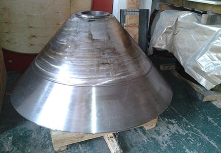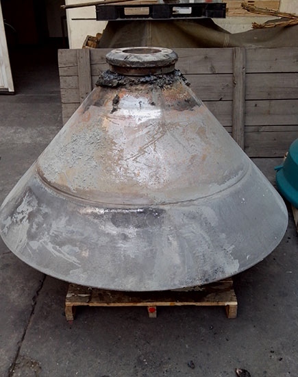 客戶HP500 破碎機動錐體在更換襯板時發現鎖緊螺栓不能拆卸,運到我公司維修。由我司技術人員判定為動錐體內螺紋損壞,同時檢查動錐體外錐面,發現磨損嚴重。
