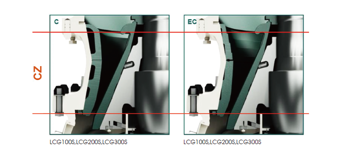 樂礦 LCG 系列圓錐破碎機(jī)可以針對不同的生產(chǎn)要求輕松調(diào)整腔型,通過選擇不同的破碎腔型,同一臺破碎機(jī)可用于破碎生產(chǎn)過程中的第2 段、第3 段或第4 段,以生產(chǎn)不同尺寸的最終產(chǎn)品。通過沖程更換功能可以輕松地對破碎機(jī)物料通過量進(jìn)行調(diào)整,以便與其他破碎設(shè)備的運(yùn)轉(zhuǎn)相協(xié)調(diào)。LCG 系列圓錐破碎機(jī)廣泛的適用性得益于同一主機(jī)結(jié)構(gòu)可以通過更換襯板來獲得不同破碎腔型,因而能夠根據(jù)破碎流程的變化來調(diào)整破碎機(jī)的腔型,適用性更廣。