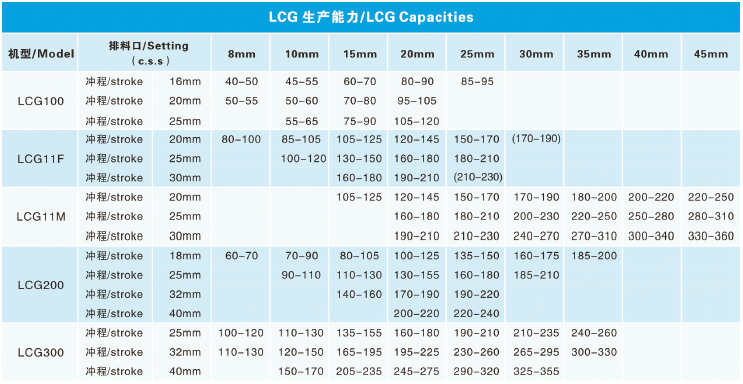 樂礦LCG 系列圓錐破碎機(jī)代表了先進(jìn)的破碎機(jī)技術(shù),破碎效率更高,生產(chǎn)成本更低,破碎產(chǎn)品質(zhì)量更優(yōu)秀,能夠充分適應(yīng)各種破碎工況,即便是極其堅(jiān)硬的巖石也能夠應(yīng)付自如。對于石料或礦山行業(yè),要求破碎設(shè)備產(chǎn)量高、產(chǎn)品粒型優(yōu)良、機(jī)動性好,LCG 系列圓錐破碎機(jī)不但能夠滿足這些要求,而且能夠使破碎流程更加順暢,實(shí)現(xiàn)破碎流程的全自動化。LCG- S 系列中碎圓錐破碎機(jī)有3 種標(biāo)準(zhǔn)機(jī)型,可配置出6 種不同的破碎腔型;LCG 系列細(xì)碎圓錐破碎機(jī)有5 種標(biāo)準(zhǔn)機(jī)型,可配置出20 余種不同的破碎腔型。